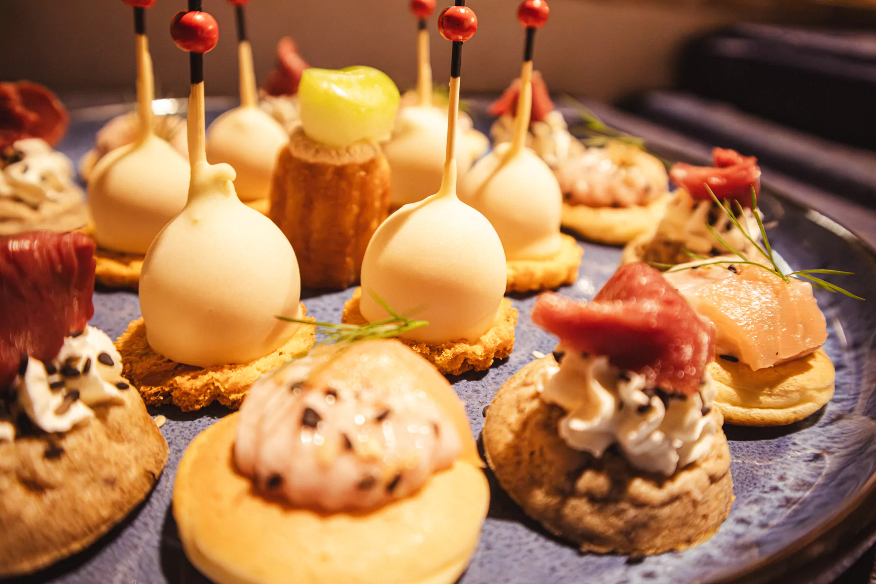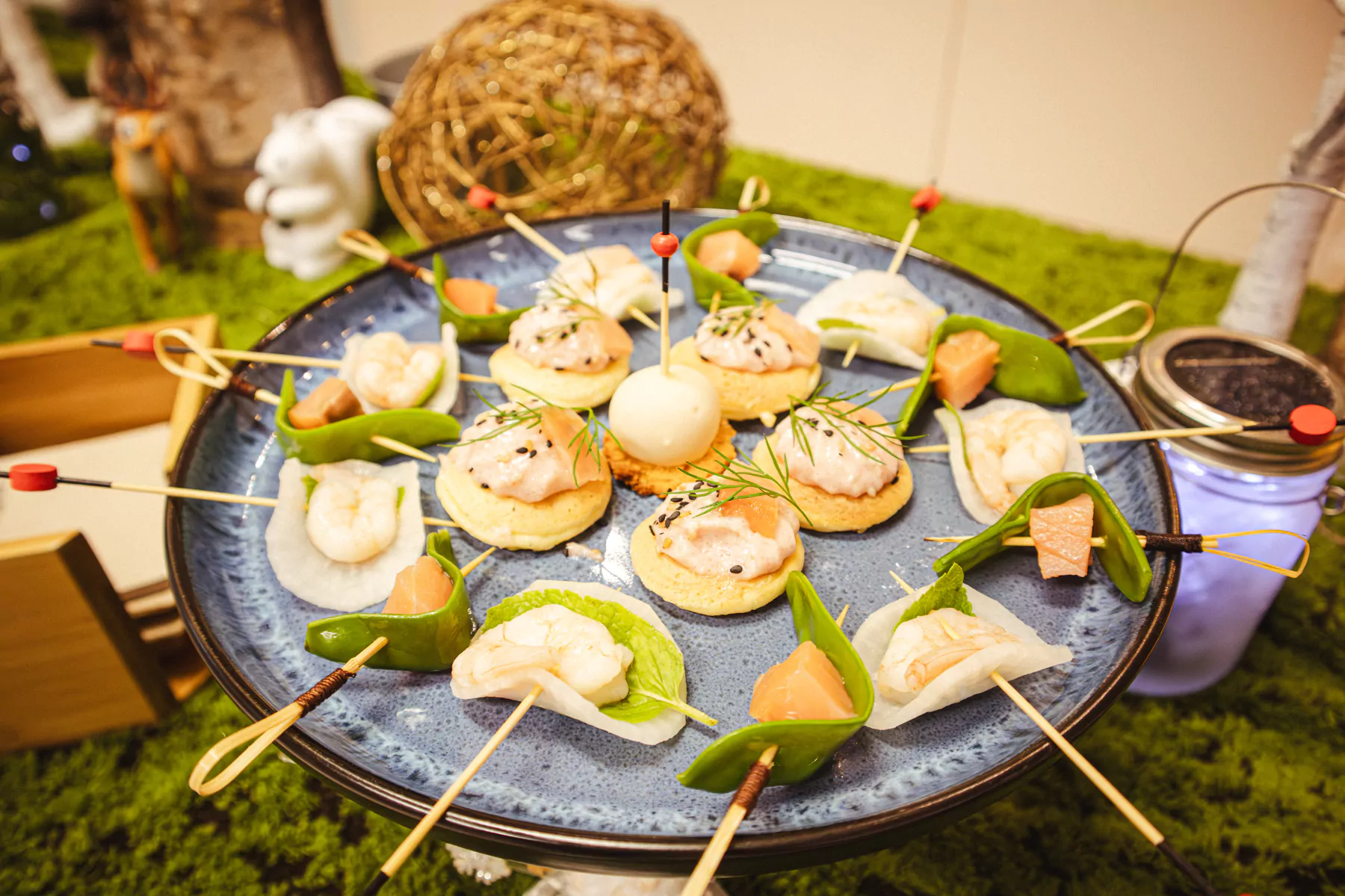 Saumon fumé, saint-Jacques, foie gras poêlé, Gambas flambé ou encore des animations sucrées (mini crêpes, fontaine de chocolat, candy bar, ect.) Artisan Traiteur sera faire de belles animations pour votre reception.