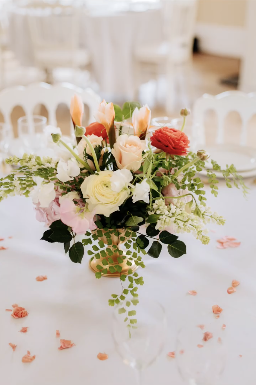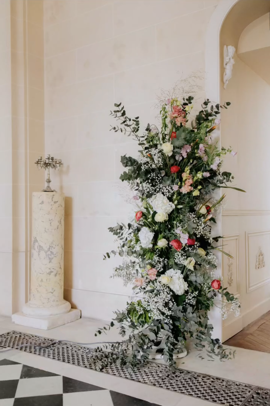 Création de compositions florales personnalisées pour votre mariage : bouquet de mariée, centres de table, décoration de cérémonie ou arche florale, toujours avec des fleurs de saison soigneusement sélectionnées.