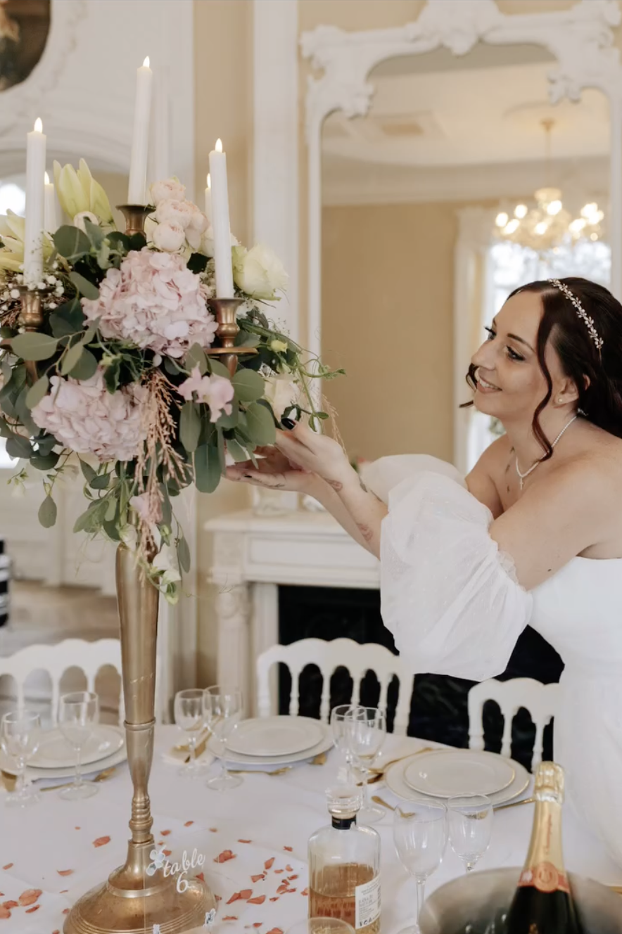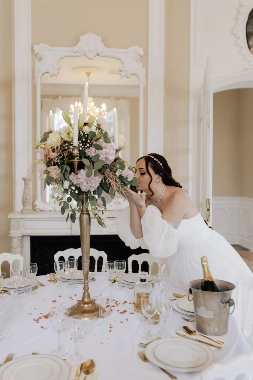 À travers Rose de Vigne, elle propose bien plus qu’une simple prestation de fleuriste : une véritable mise en scène complète de votre mariage, mêlant fleurs, décoration et location de mobilier.