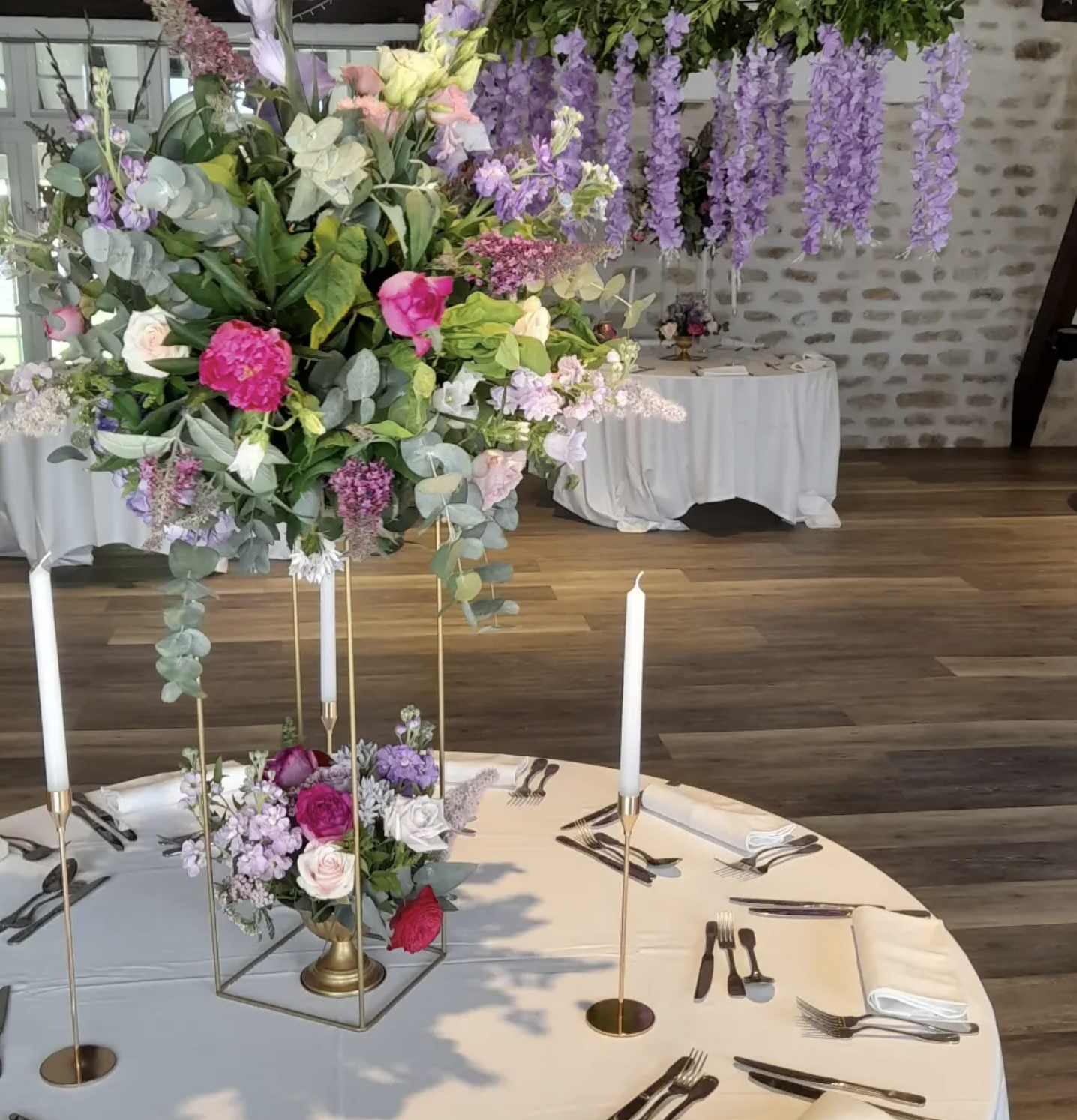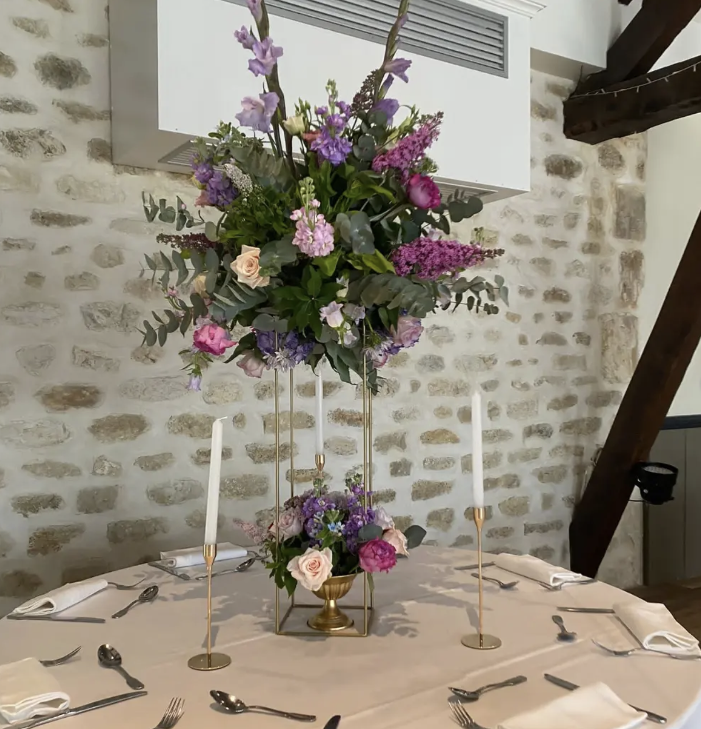 Conception globale de la décoration de votre mariage : choix des fleurs, sélection du mobilier, harmonie des matières et des couleurs pour créer une ambiance unique et cohérente.