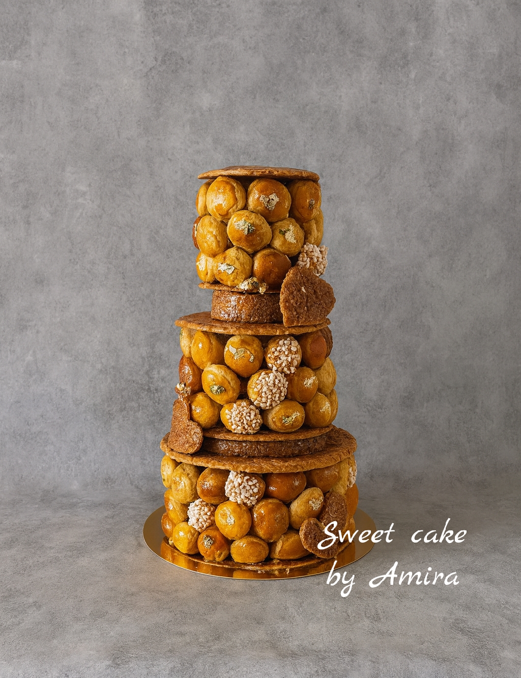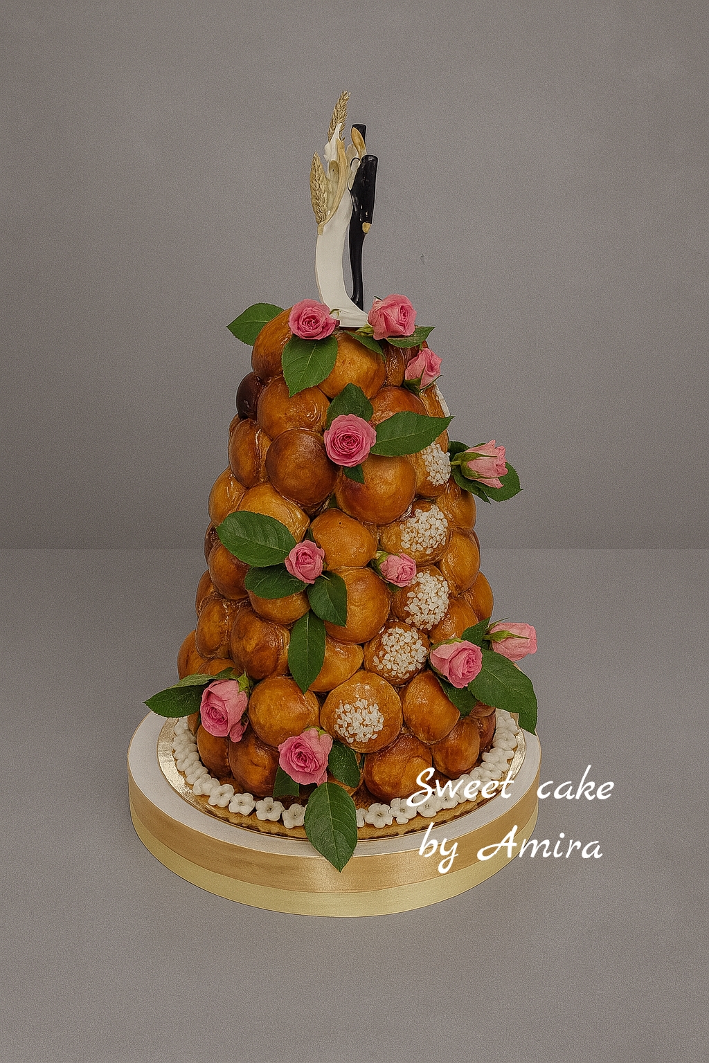 Cette formule comprend : La création d’un modèle sur mesure en fonction de votre thème, Le choix des saveurs selon vos goûts, Les ajustements nécessaires (ex : sans fruits à coque), La réalisation du gâteau avec un soin particulier apporté aux détails, La livraison et la mise en place sur le lieu de votre réception.